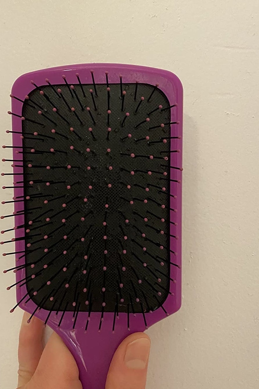 9. A double-sided hairbrush-cleaning brush that’ll do a more satisfying cleanup job than your fingers ever could, with a pointed end for picking out tangles and stiff bristles to remove all that built-up hair, dust, and fluff.